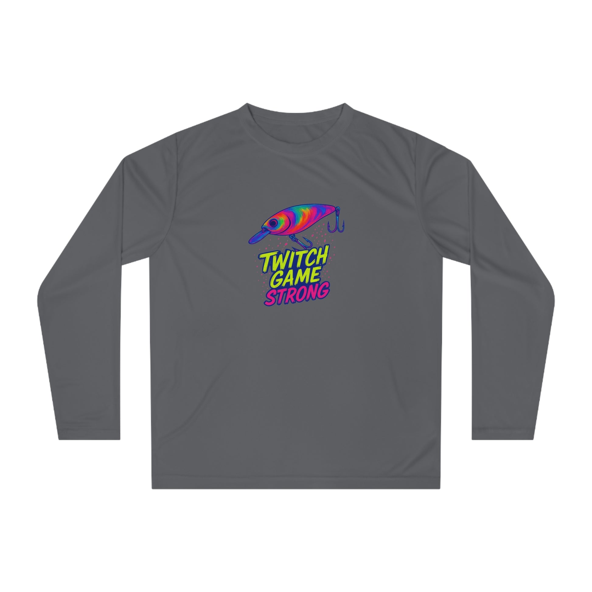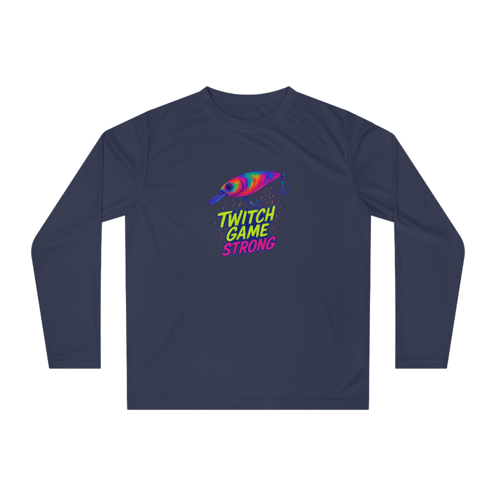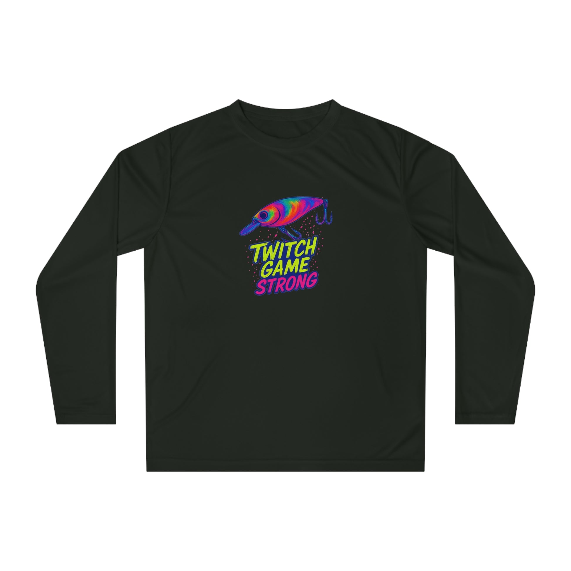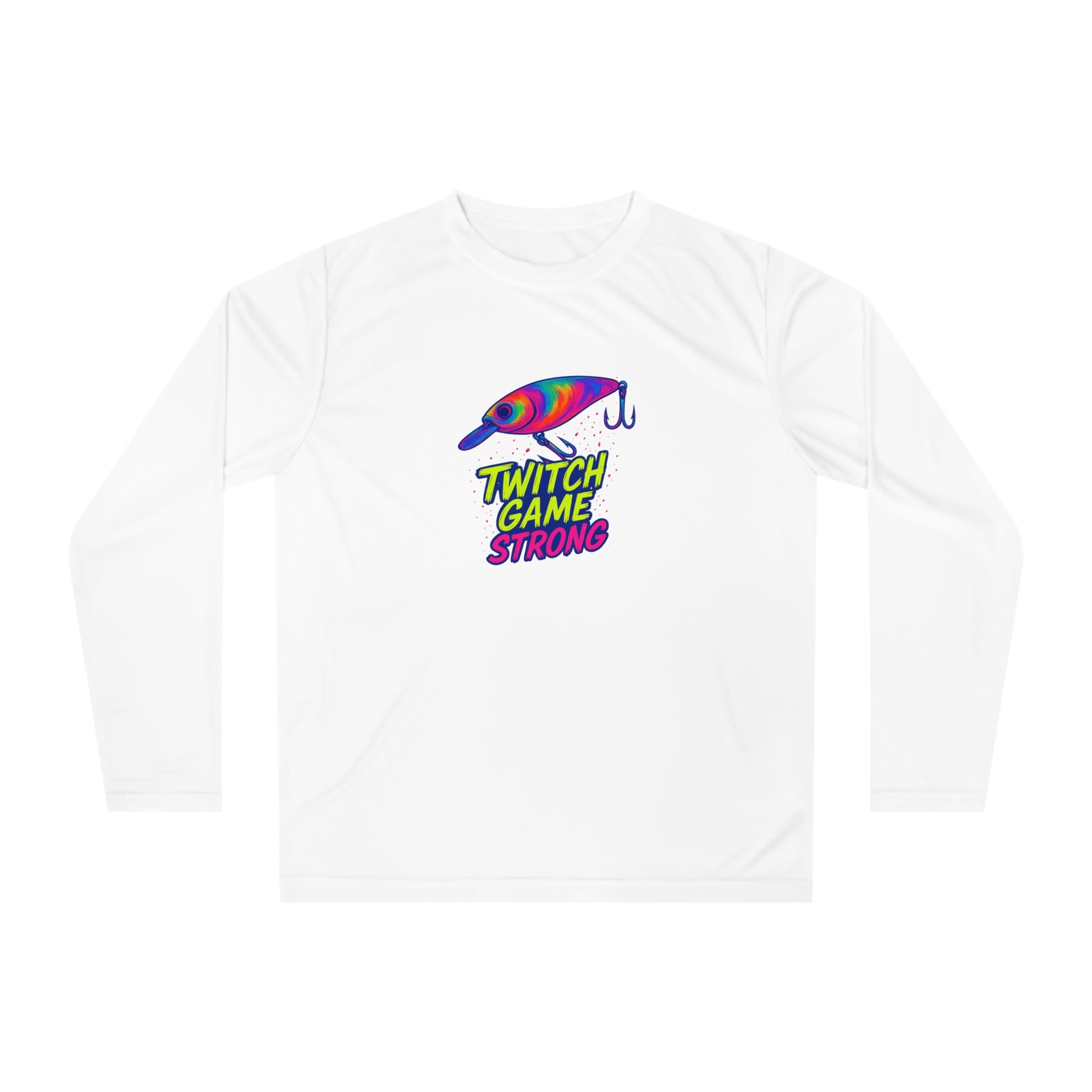 Execute your technique flawlessly in The Electric Angler: Twitch Game Strong Jerkbait Performance Shirt. This moisture-wicking shirt is designed for the angler who relies on precision. Featuring the vibrant neon jerkbait graphic and "TWITCH GAME STRONG" text, it keeps you comfortable and dry as you work your magic, allowing you to focus on every subtle twitch and pause that brings in the big ones. Show off your skill on the water.